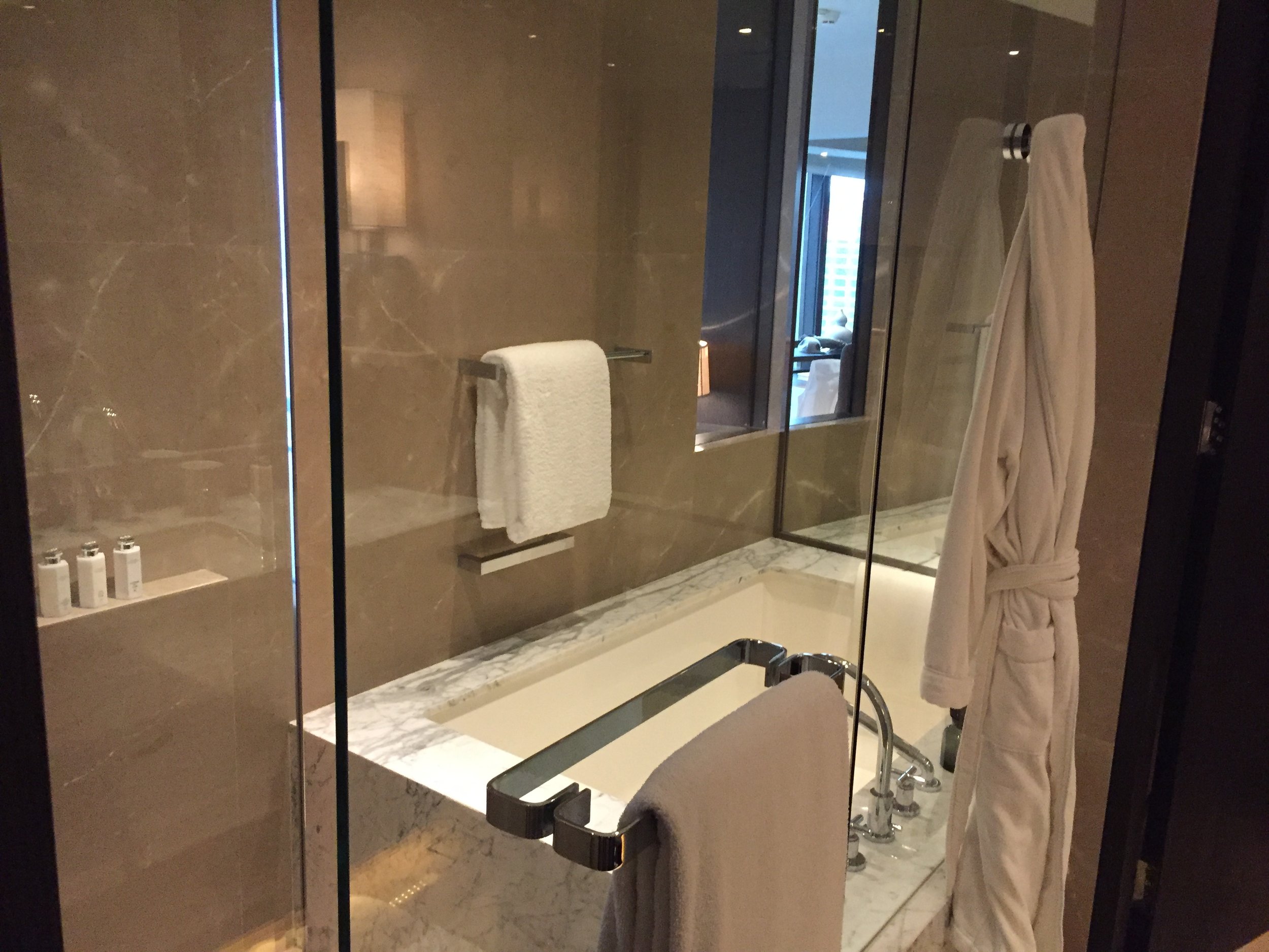 After a few minutes of excitement - which of course still keeps on even a few weeks after our stay - we were ready to inspect the bathroom. With a super stylish basin with all guest amenities needed including C.O. Bigelow mouthwash, a separated toilet (not an electronic toilet, tough a plus for some), a walk-in shower with a perfect pressure as well as a huge bathtub fit for two people, this bathroom was just gorgeous in all ways. Might it be design wise or due to the attention to details, I don't know. The only thing I know is that I was overwhelmed by the big Lorenzo Villoresi toiletries that looked simply wonderful in their typical six-angled bottles. Can a hotel bathroom be better like this? Probably not if you're asking me.