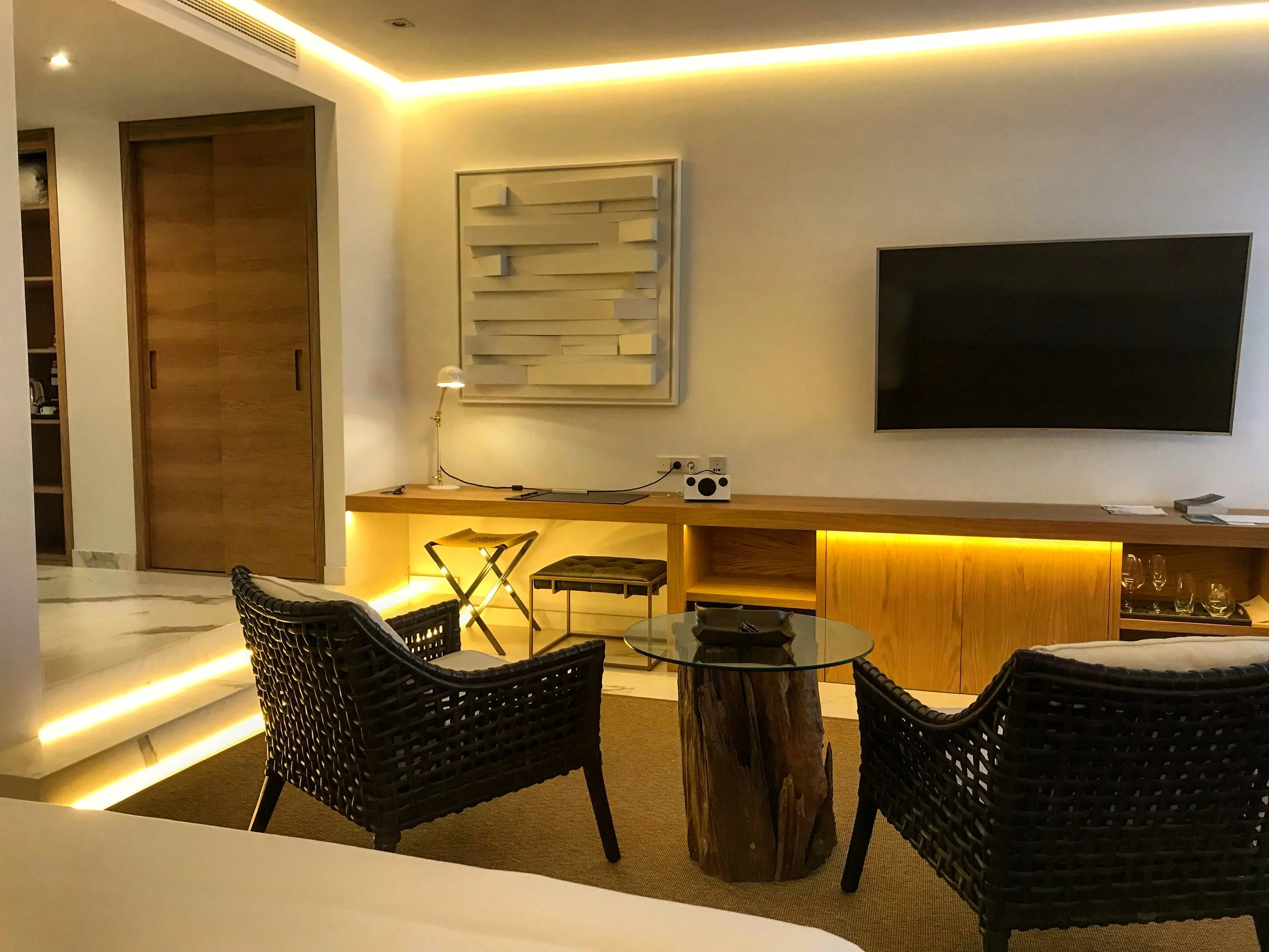 As our room was not ready yet, we headed to the Nobu Restaurant and got a first impression of what “Nobu” really means – attentive service, tranquil atmosphere and high-quality products. It was even better knowing, that we will have more opportunities throughout our stay to try more of their individually created dishes. Later that day, it was finally time to explore our room. We had generously been upgraded to a Studio Suite which could not have designed in any better way. The simple design had been perfectly adjusted with local touches though it is probably easier to let pictures speak for themselves.