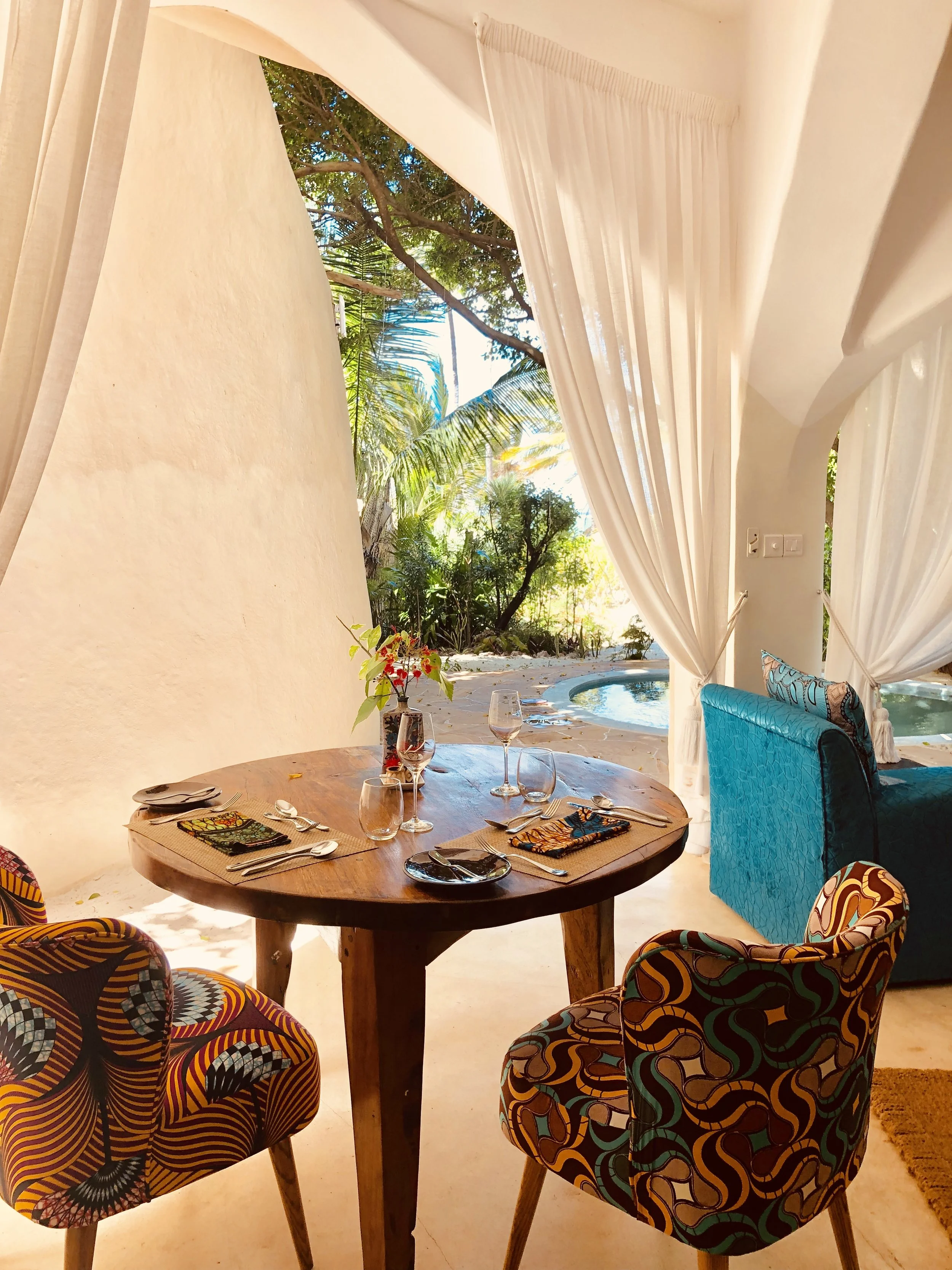 Only once the friendly front desk manager and Pieter the general manager greeted us by our last names, we knew for sure: we are at the right address. Both of us stood there in total excitement, wanting to see more of the property. Surprisingly there was no front desk nor concierge table. Only a lovely boutique that made up the lobby which we shortly passed on our way to the villa. We were allocated one of the few Oceanfront two-storey villas which are just impossible to describe. There was no real check-in, they just introduced us to our butler Wilson, who was only allocated to our villa and here for all food services and any wishes. Xanadu comes with an all-inclusive package - just like the safari lodges - hence the high price tag of up to 1.000 Dollars for one night. What might sound like a lot for Zanzibar is actually quite alright, considering the smallest villa is very spacious, and every booking comes with its own butler. They asked us if we already had lunch and since we answered with no (we came from the Serengeti and had quite a layover in Arusha with not much of lunch options). So then Wilson arrived with a selection of snacks, and we were served a super delicious sandwich. The first bottle of Sauvignon Blanc was opened, and the fun began. Every guest can choose where they shall serve your dinner or lunch. You have the choice between dinner in the dining room of your villa, in the main restaurant on the pool or on the beach (unfortunately it was a bit windy during our stay).