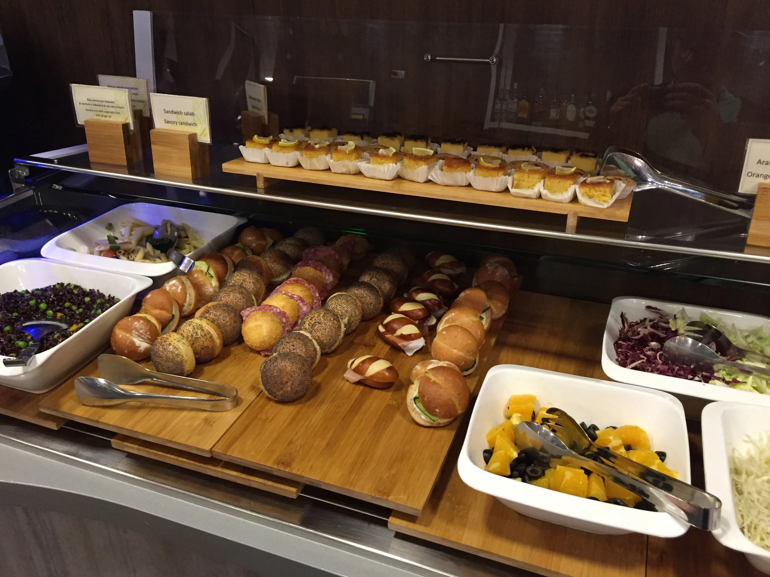 Let me point out that Rome‘s Fiumicino Airport is just massive in terms of size. I have no idea how many kilometers I walked and it is not considered to be an easy airport in terms of navigation. Even tough I was at the airport 2 Hours before Departure, I only had 40 Minutes left in the Casa Alitalia. Honestly, this lounge was the best airport lounge I have ever seen. Not just in terms of design but also of food and drinks. There was the possibility to order any drink at the bar or freshly baked pizza along with an excellent selection of pasta. The bathrooms were super chic and clean providing Terme di Sirmione toiletries. Due to time issues I had no chance to use the showers. Service in the Casa Alitalia was nothing special, the barkeeper was friendly and nice tough - making sure I always had a full glass of Ferrari (Italy‘s premium sparkling wine). The highlight for me was the Poltrona Frau interior along a very well pizza freshly made in the lounge. Right on time, the flight was called out and the lounge being situated in the Satellite terminal, it is only accessible for passengers flying on Alitalia’s long-haul flights. It took me about 90 seconds until I reached the gate and found myself as the first one on board. Quite impressive so far for an airline with a terrible reputation.