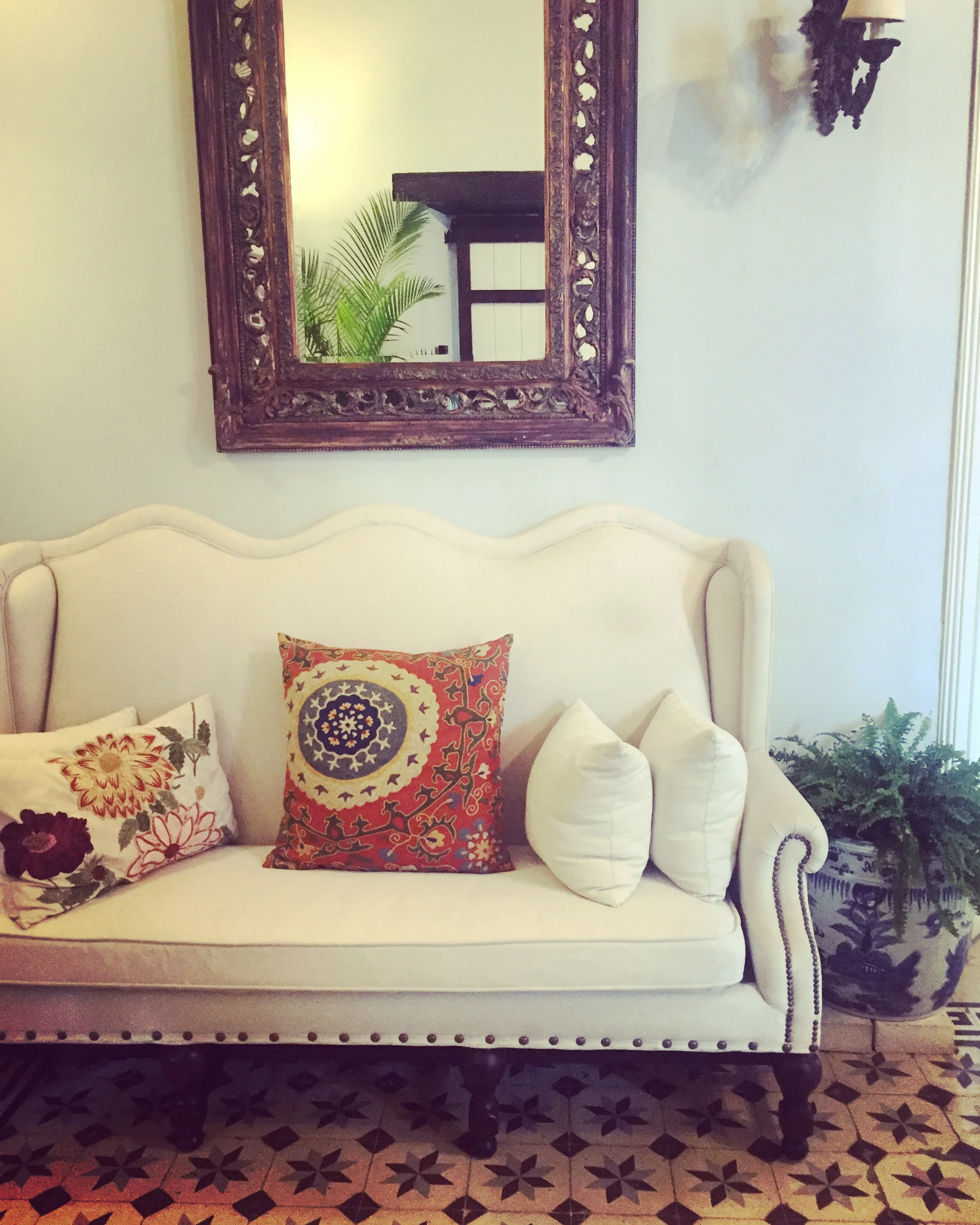 When in the Dominican Republic, there is no way to miss the oldest city in America and the capital of the island: Santo Domingo. I am a travel lover and I can't hide my excitement for surprises when it comes to hotels. Sometimes I have no expectations, sometimes they are incredibly high (especially when hotels charge a high rate). With some average expectations of a city hotel for 300 USD a night, we arrived in the real heart of Santo Domingo. Well, you don't have much choice when travelling to the Dominican Republic: you are either stuck with a rental car or a private driver. If you are lucky, go for the latter one since driving into Santo Domingo is not the best place to show off your amazing driving skills - driving in Milan or Rome might be easier. Thanks to our non-working GPS system and the fact that there was no hotel-style entrance, we missed the hotel at first instance. A drive around the corner made us more familiar and soon we were sure: Number 352 must have been the right place, still no sliding door or anyone outside to welcome us. The only visible thing was a sign of Small Luxury Hotels and the name of the hotel in addition to a bell. I love unique places - and this one seemed to be exactly what I needed after all recent Caribbean resorts. After ringing the bell the door wad opened and we were welcomed by the last name (I guess we must have been the only check-in) and offered a seat in the wonderful living room.