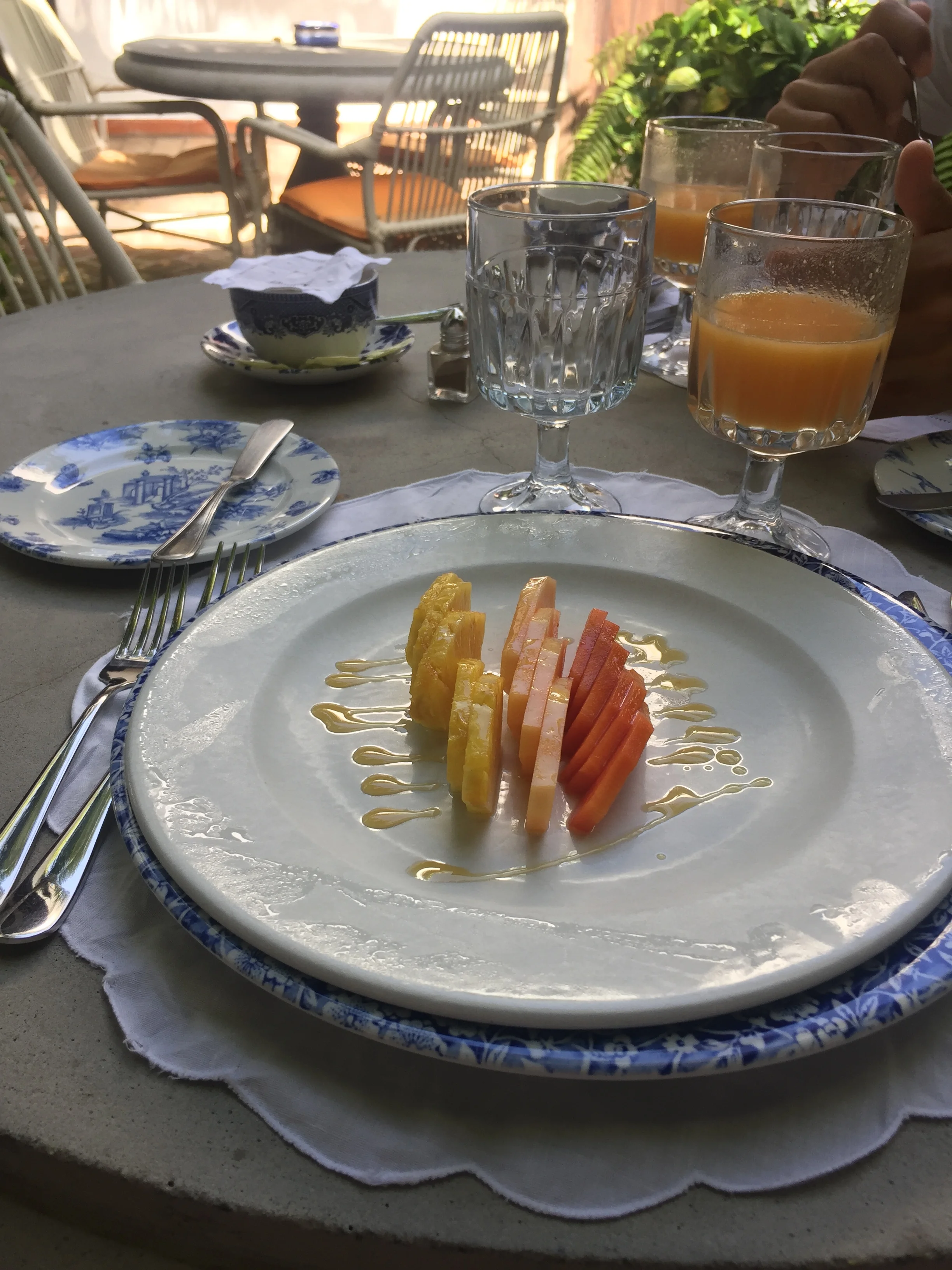 When it was ready for dinner, we decided to head towards El Mason de Cave (one of the city's poshest places and a must-see when here for the first time), we were introduced to our driver who took us to the restaurant and waited there until we finished dinner. It is actually the best way to leave the hotel since we were not familiar with the city and it's not the safest place neither. At 70 USD for three hours of private chauffeur, we found it to be a fair deal and I have to admit it was great not to be worried about our safety. The next day we opened our room door and were welcomed by an extremely pretty breakfast table in the courtyard prepared by Joshua. While all the other things were extremely great too, breakfast was the absolute highlight for me with the best juice I've ever had (strawberry, mango, watermelon and all my other favorite fruits), amazing scrambled eggs, outrageous homemade mango jam plus great pancakes with nutella filling and fresh bananas. While this would be a breakfast worth the Parisian prices, it's included in the room rate!