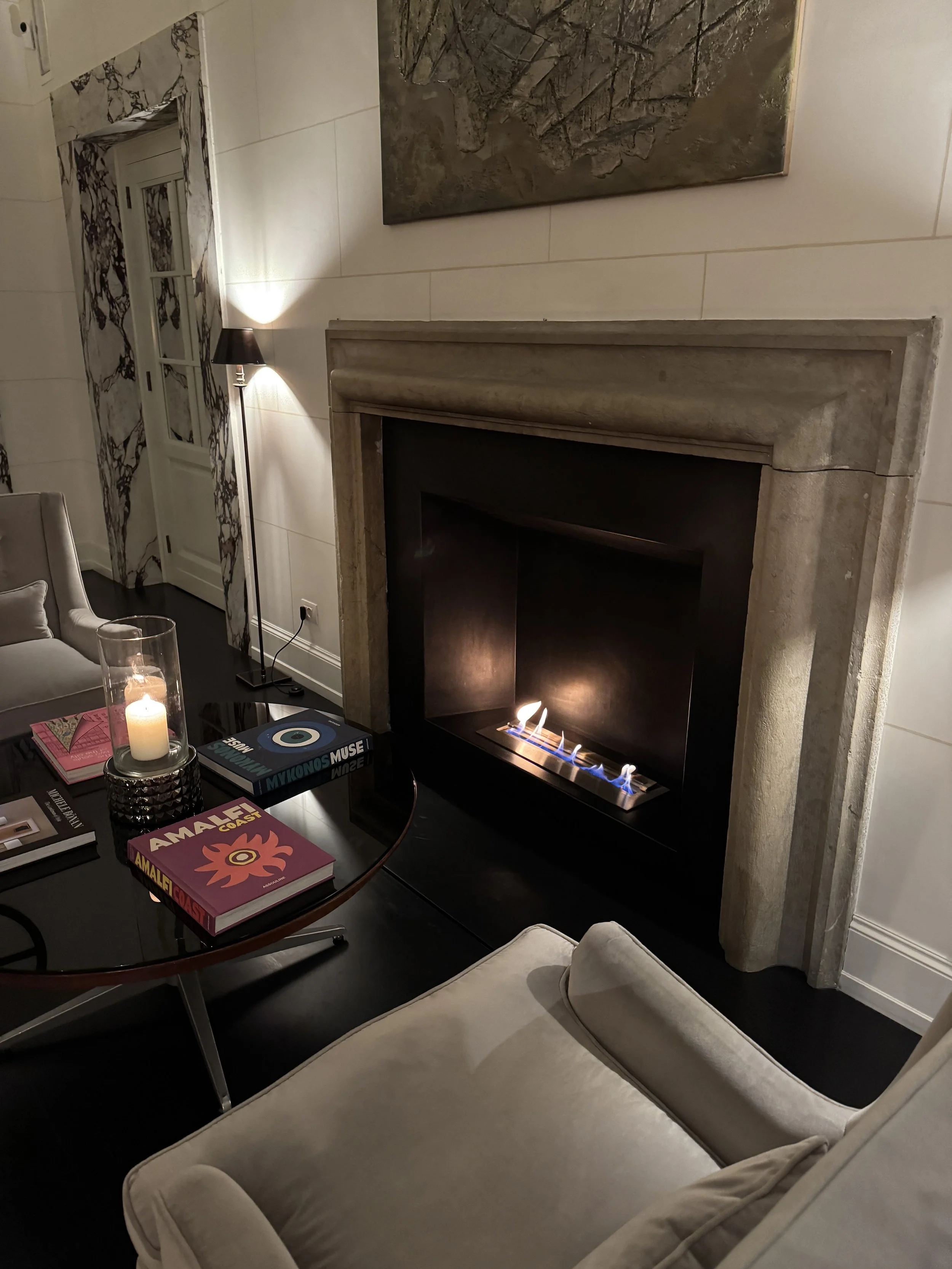 For my fourth visit to Rome, I finally decided to tick off two classics: visiting the Sistine Chapel and stepping inside the Colosseum. Both attractions are easily reachable on foot from the hotel. Along the way, we also discovered two stunning and still relatively unknown rooftop terraces — an absolute must on a sunny Roman day. Even on Valentine’s Day in mid-February, we were lucky enough to enjoy a glass of rosé bubbles under a surprisingly warm winter sun, overlooking the rooftops of Rome. We landed at Fiumicino just in time for aperitivo and were picked up by private limousine to be taken into the city. Although the airport is quite a distance from the historic center, private transfers in Rome remain a relatively affordable luxury — and after a flight, the convenience is worth it. Upon arrival at Via di Monte d’Oro 30, a discreet iron sign indicated the hotel’s name. Guests must ring a bell to be admitted, a subtle yet deliberate reminder that this is not an anonymous chain property, but rather an intimate townhouse-style retreat. The heavy doors opened, and we were warmly welcomed by two front desk attendants who invited us to take a seat in the impressive lobby lounge. Seated in comfortable armchairs in front of the fireplace, we were immediately offered a welcome drink. JK Place provides an entire bar menu from which guests can select a complimentary arrival beverage — a thoughtful detail that sets the tone from the very beginning.