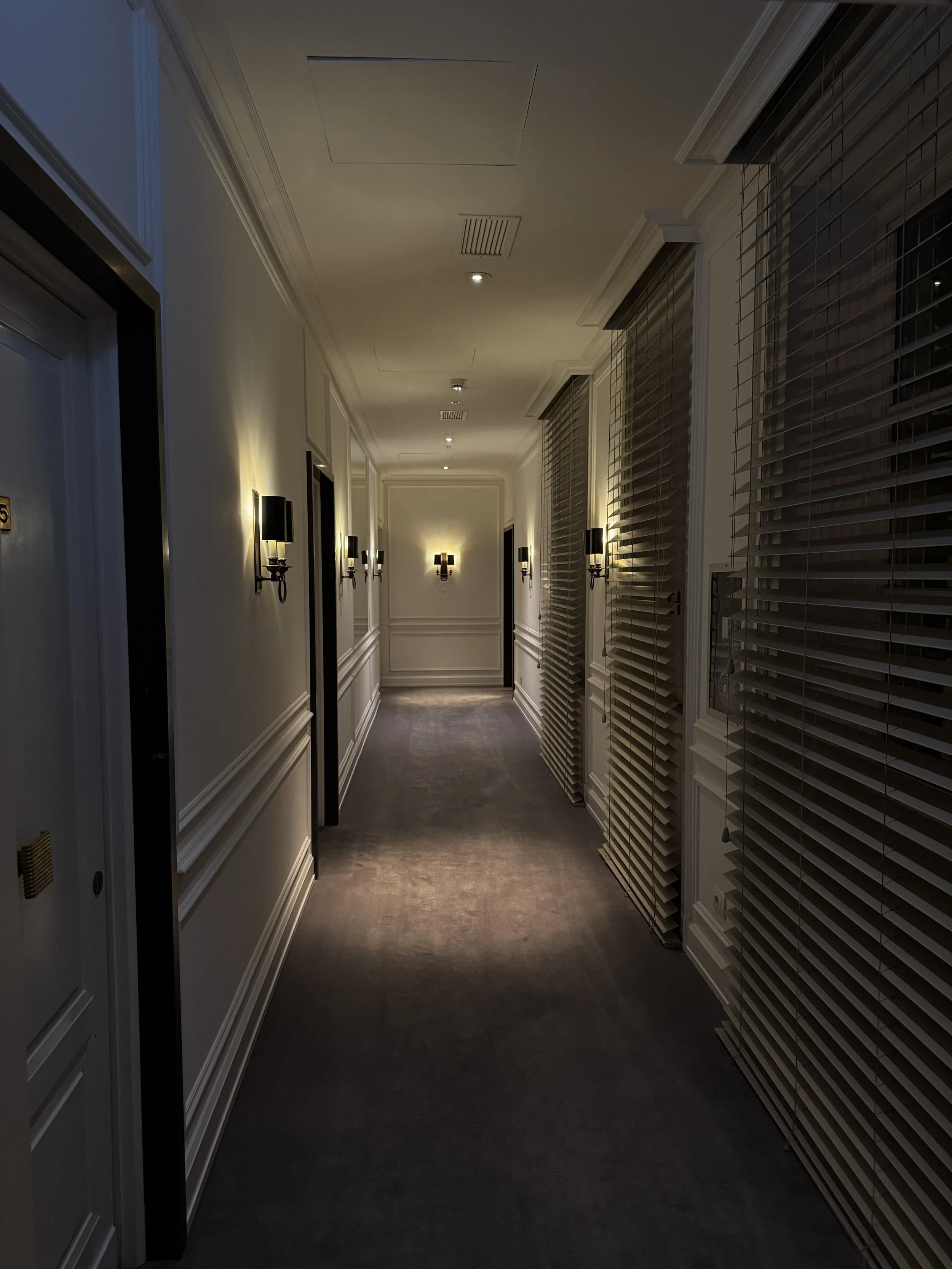 As expected, the bathroom upheld the hotel’s reputation — both Rome and Paris are known for their beautifully designed bathrooms, and ours did not disappoint. Although the bathroom featured a shower-tub combination, it delivered a strong wow factor thanks to a separate toilet room with bidet, a semi-separated vanity area with double sinks, and a large window allowing natural daylight to flood the space. The toiletries had recently been updated: the former signature amber fragrance has been replaced by a fresher, more contemporary scent by skincare brand Alma K, enriched with minerals from the Dead Sea. Toiletries are provided in generous 100ml tubes rather than fixed dispensers — a detail I personally appreciate. Taking them home extends the sensory memory of the stay. Housekeeping performed flawlessly, refreshing towels twice daily and restocking the minibar every afternoon. Small details stood out: body lotion and scrub packaged like gifts, turndown service accompanied by delicate treats placed next to bottled water, and a note referencing an evening playlist curated specifically for the hotel. It is these touches that encourage you to disconnect and unwind before settling into the exceptionally comfortable bed.