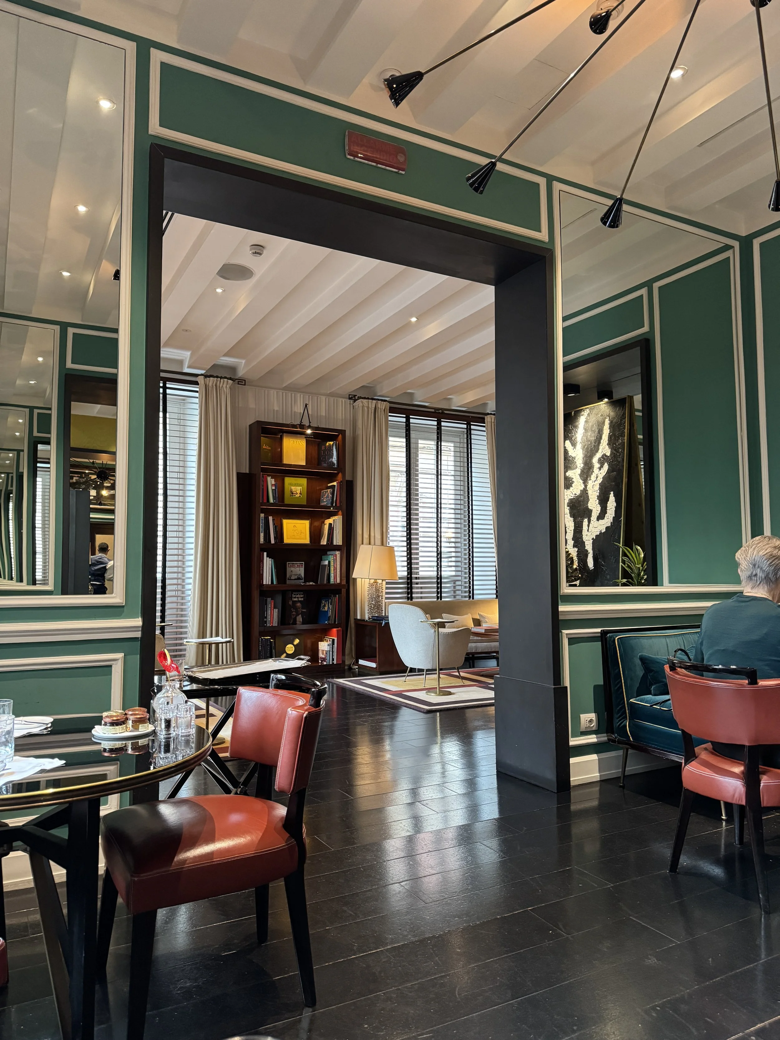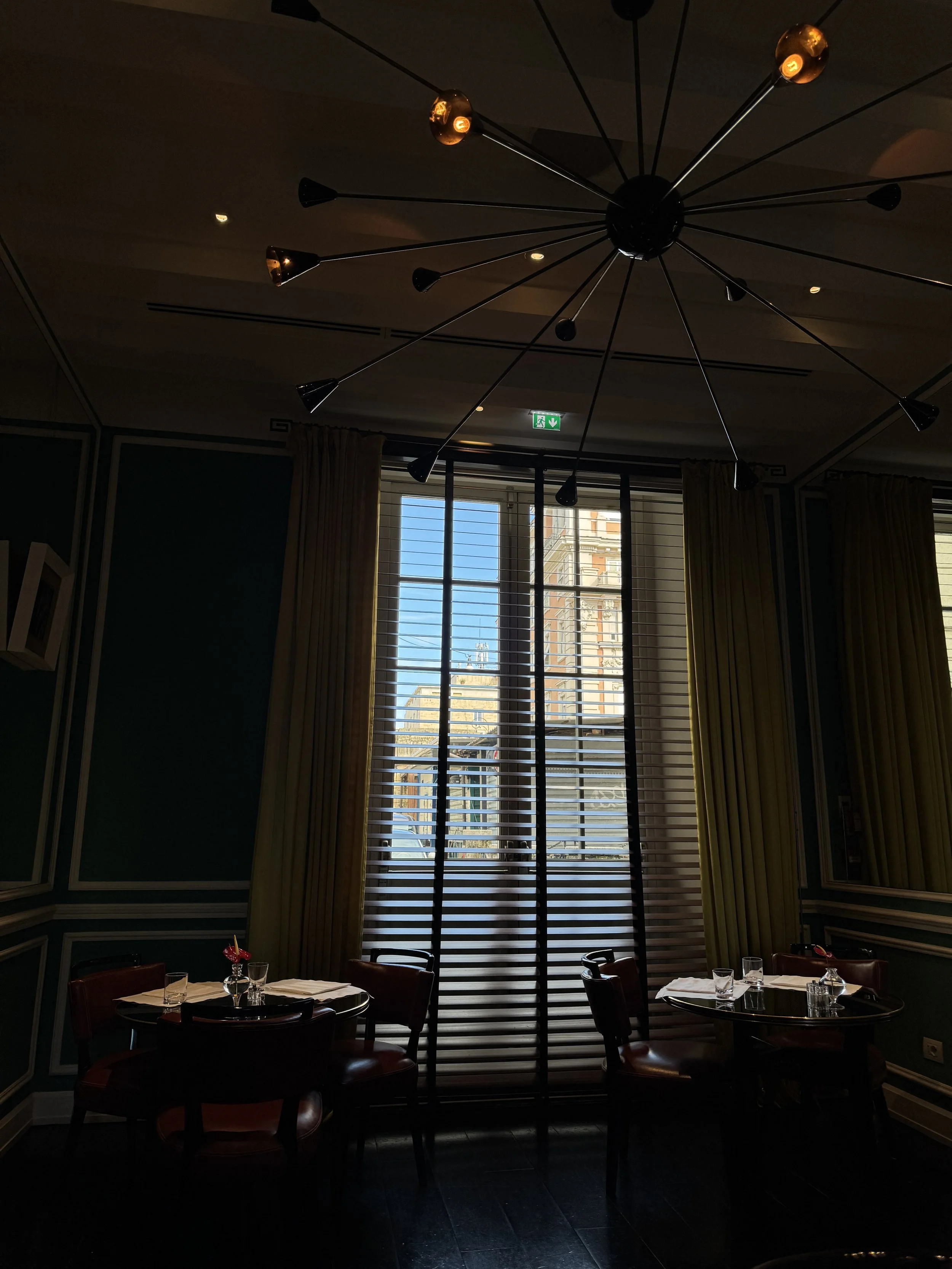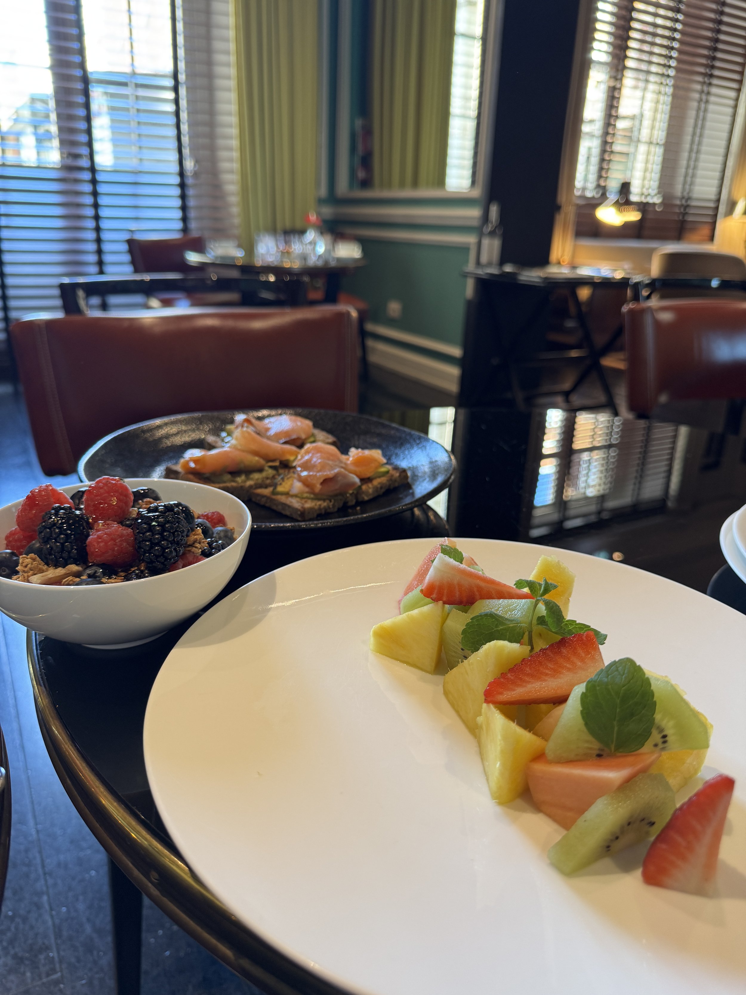 Another major advantage of staying at J.K. Place is that breakfast is included in the rate. In a city like Rome, this is a meaningful perk. Breakfast is served at JK Café and offered entirely à la carte. As soon as you are seated, staff pour water and fresh juice, take your coffee order, and place a bread basket on the table — a comforting gesture for early morning hunger. We enjoyed a beautifully presented fruit platter, excellent Eggs Benedict, and outstanding yogurt with homemade granola. Guests are welcome to order multiple dishes, though we found two courses more than sufficient each morning. The restaurant’s intimate design creates a cozy and inviting atmosphere without feeling crowded — particularly valuable before venturing into Rome’s bustling streets. The restaurant team deserves special recognition. If possible, they were even more attentive than the front desk staff. During our two-night stay, we returned twice for aperitivo at the bar — not only because of the ambiance, but due to the exceptional service and dedication shown by the two maîtres.