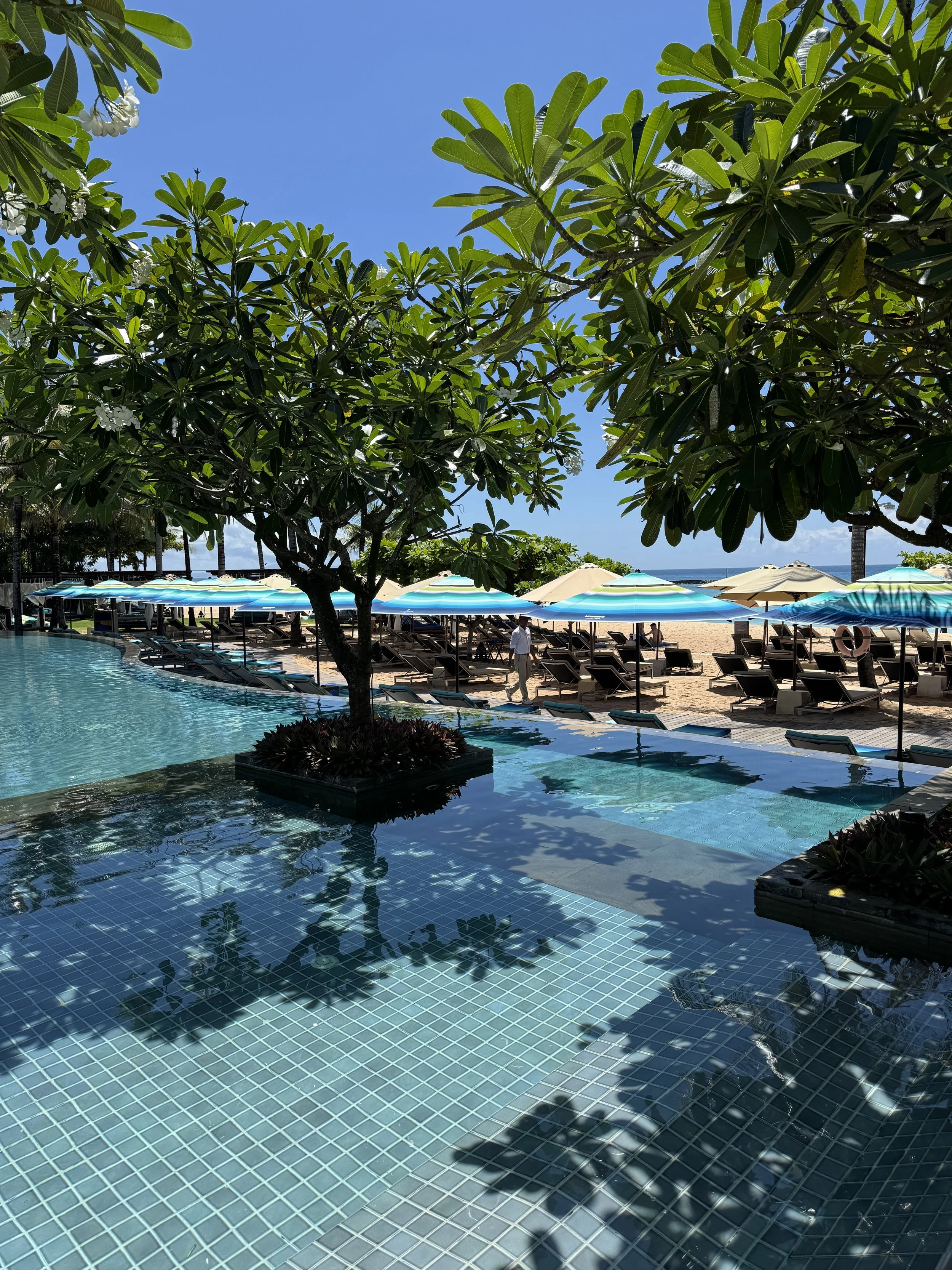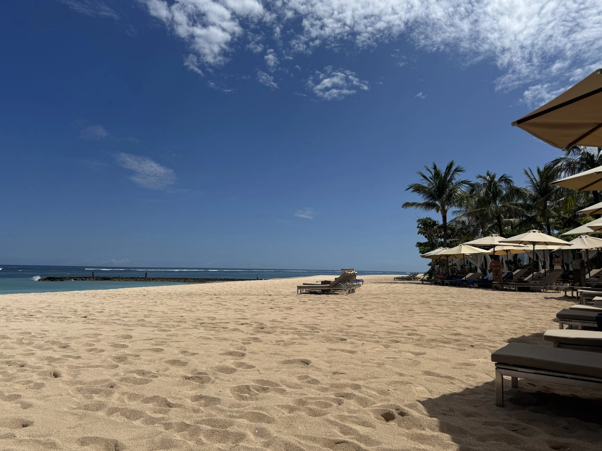 The resort’s location is another undeniable asset. Nestled at the southern end of Nusa Dua beach, alongside the Kempinski and Hilton, the Ritz-Carlton enjoys a secluded stretch of shoreline that is inaccessible to the public. This means no beach vendors, no through traffic—just guests and uninterrupted tranquility. One afternoon, we wandered over to the neighboring Kempinski and took a discreet dip in their pool (a cheeky move, I admit). While lovely, it reaffirmed our preference for the serene, refined ambiance of the Ritz-Carlton. The clientele here was more in line with our vibe—understated elegance, international flair, and a shared appreciation for quality.