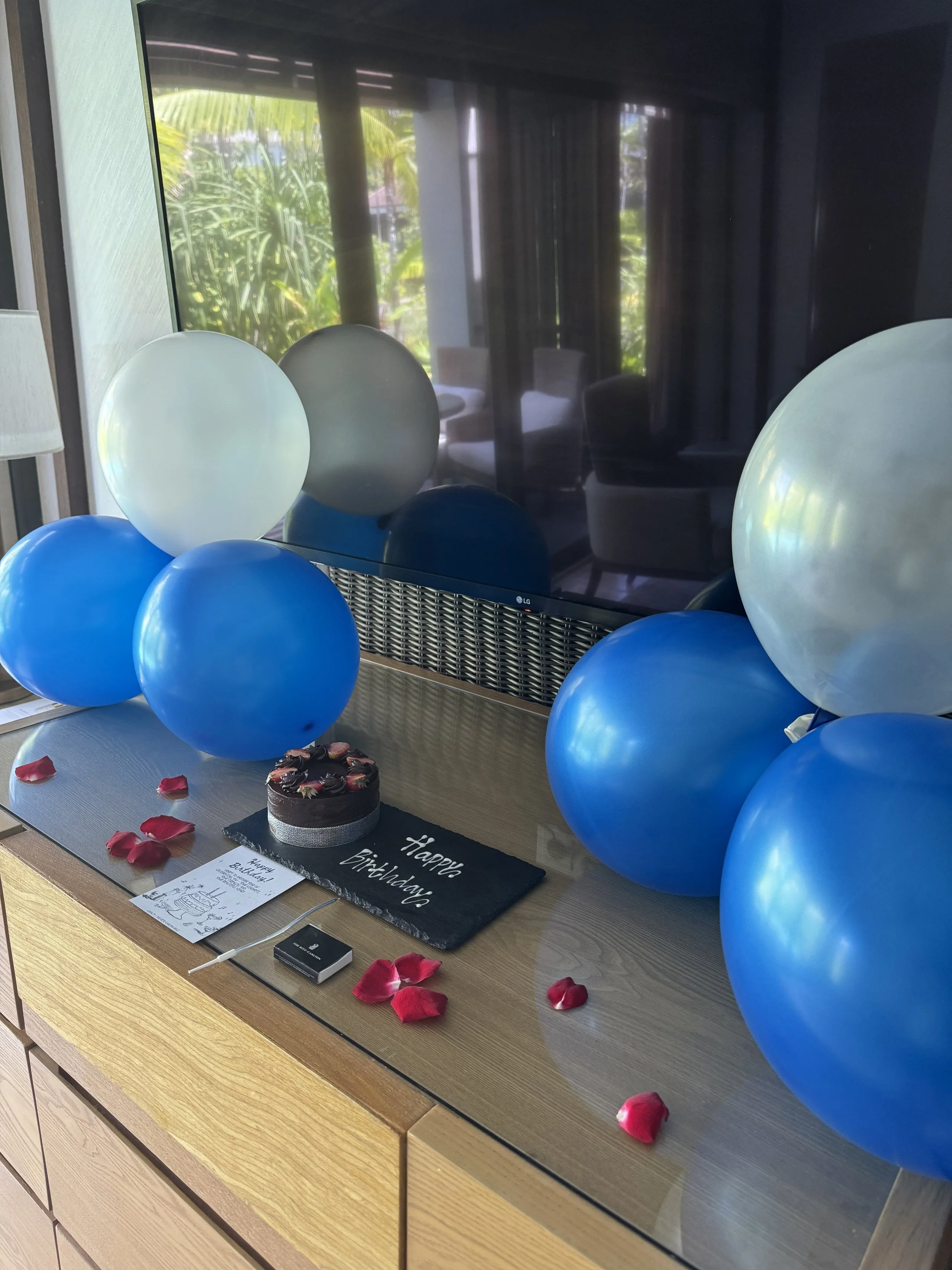 The resort’s beachfront is framed by two signature dining venues: The Beach Grill on one end and the iconic Missoni Beach Club on the other. Between them lies a vast T-shaped infinity pool, the architectural centerpiece of the resort. Service here, under the leadership of the attentive and charming Gin (yes, that’s his name), was impeccable. Someone was always nearby to top up our drinks, adjust our umbrellas, or offer fresh towels. One afternoon, Gin polished our sunglasses without being asked, and on my birthday, another team member surprised me with a beautifully arranged fruit platter and a chocolate inscription reading “Happy Birthday.” These thoughtful touches made our stay feel truly special and heartfelt.