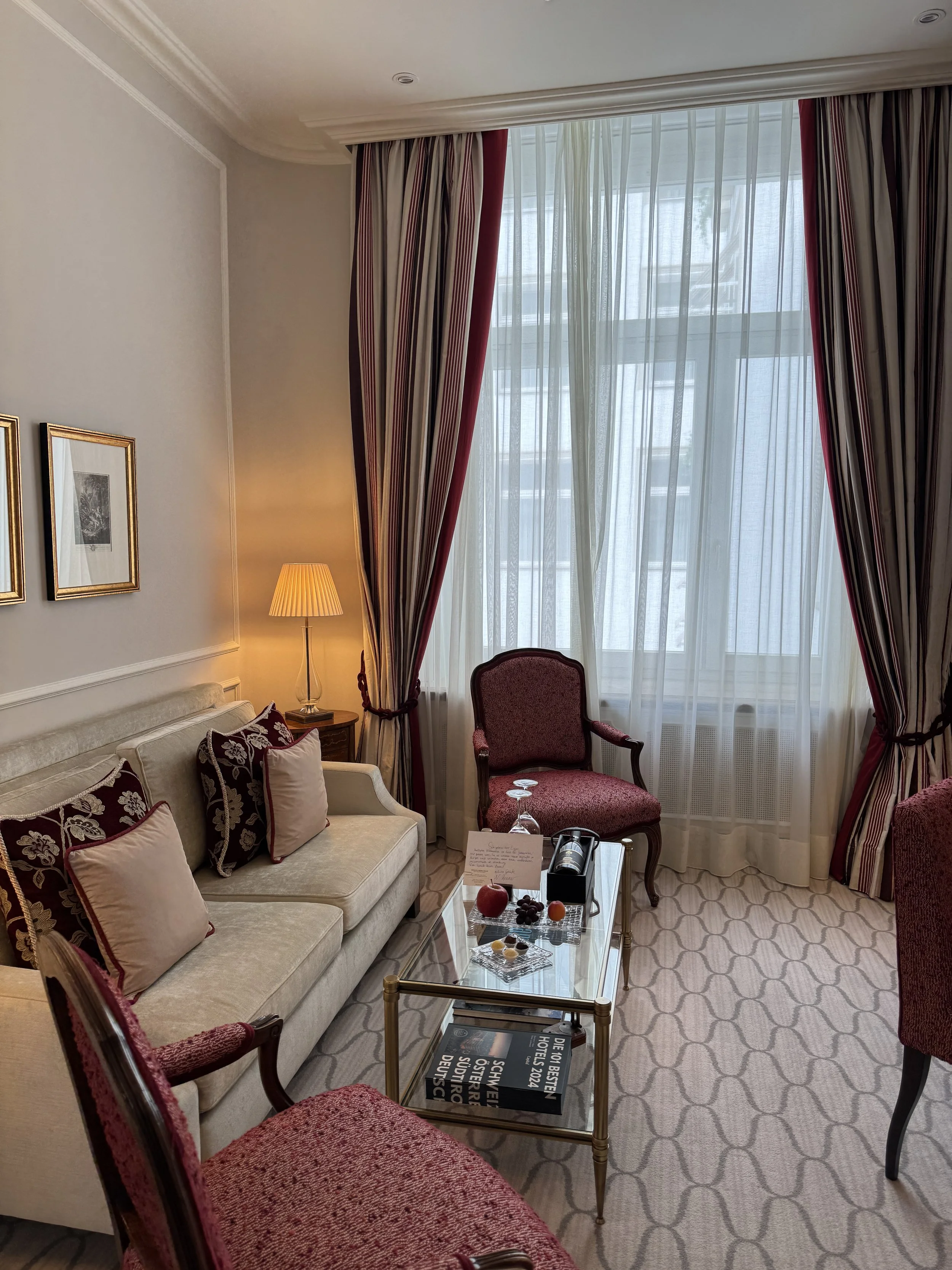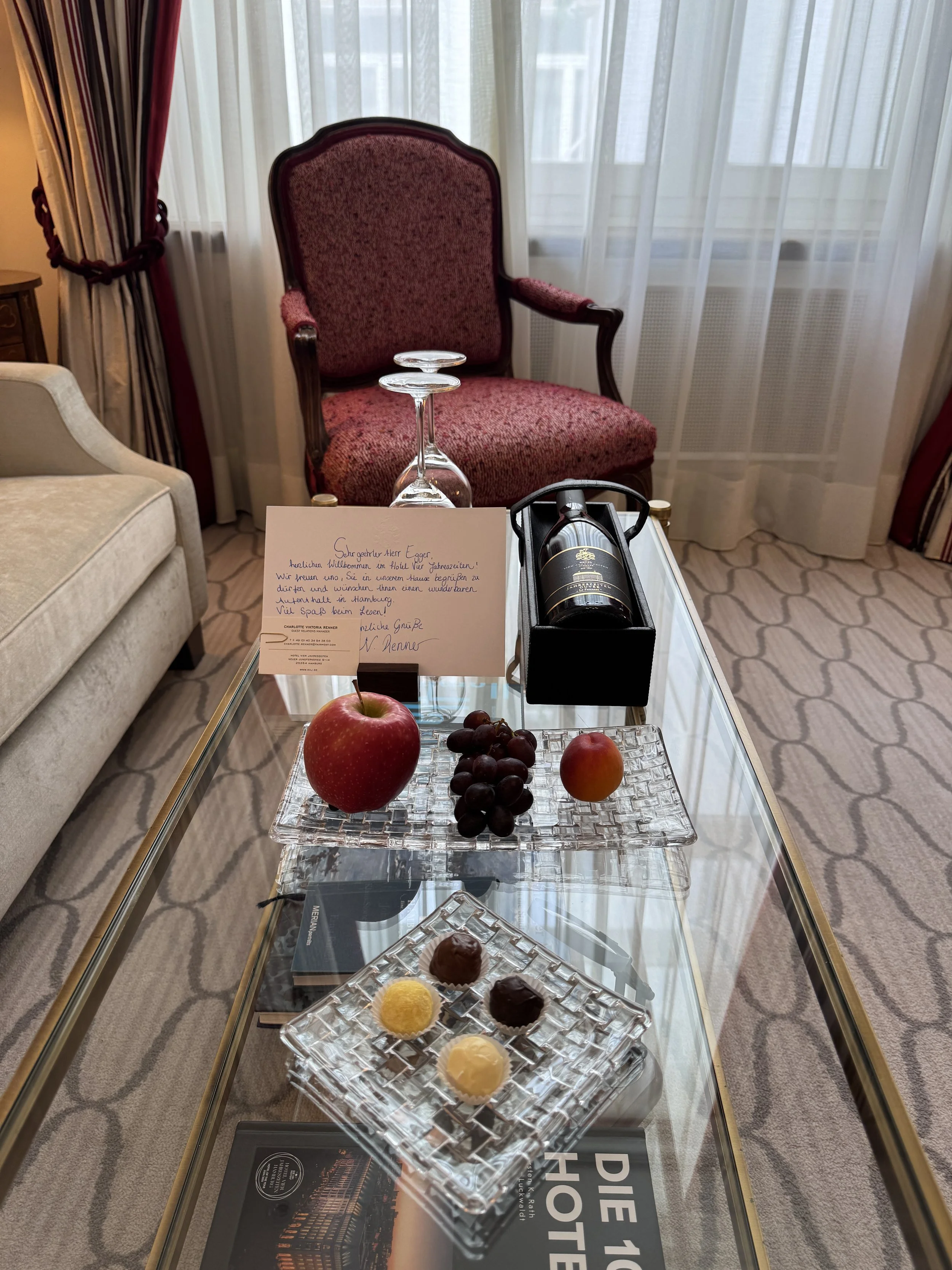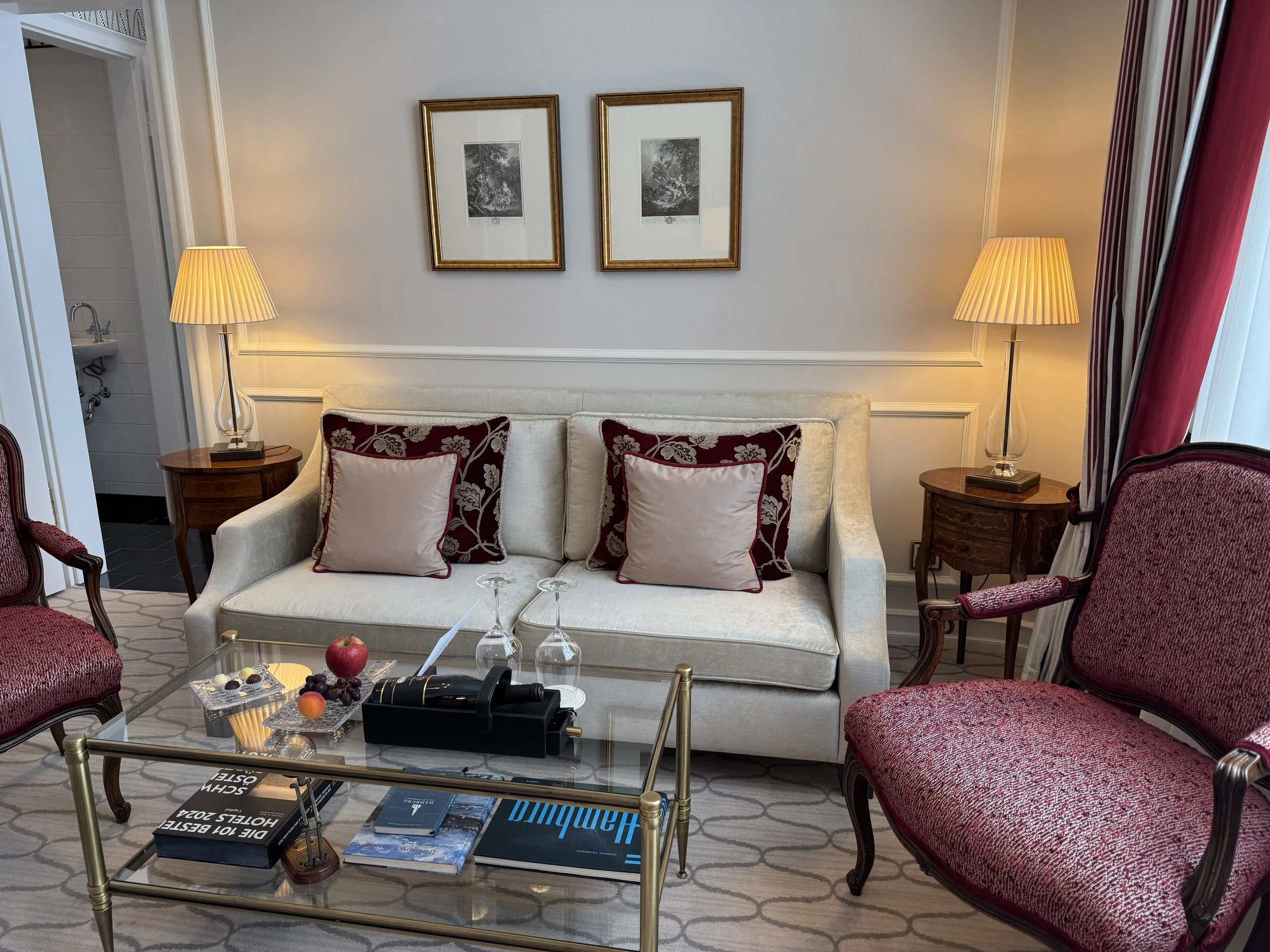 Our accommodation, an upgraded Junior Suite Garden View, was a pleasant surprise. While the hotel’s iconic Binnenalster views are often considered its defining feature, I found the courtyard-facing suite entirely satisfying. The space was impressively generous; many hotels would easily label this layout a full suite, given the genuinely separated living and sleeping areas. The design felt bright, elegant, and aligned with the heritage of a legendary European hotel without drifting into old-fashioned territory. Everything was spotless and perfectly arranged. Welcome amenities were waiting on the coffee table, along with a bottle of red wine and handwritten welcome notes. Both the General Manager and the Duty Manager had written personal letters, and the hotel’s coffee table book was also placed on the writing desk as a gift. From the very first minute we stepped foot into this hotel, my mum and I felt sincerely welcomed. Kudos to the management, which is clearly doing an outstanding job, and to each individual staff member who seems proud and genuinely happy to be working at this well-established property. It is not the kind of attitude sometimes encountered at certain famous hotels, where staff can appear distant or overly formal. Here, everyone felt authentic and down-to-earth, ensuring that guests feel welcome and cared for in the best possible way.