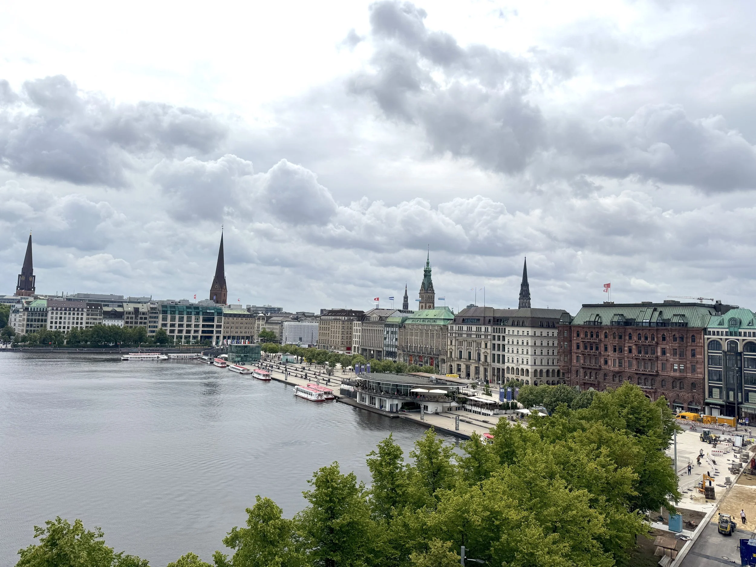 Booking through a Virtuoso agency turned out to be a fortunate decision. A “Pay Two, Stay Three” offer, combined with a 100 USD hotel credit, upgrade, early check-in, and late check-out, brought the effective nightly rate to roughly €340 for two, including the lavish breakfast. For a hotel of this caliber, this bordered on exceptional value. July occupancy in Hamburg was noticeably soft, which certainly worked in our favor. Climatically, it was also the perfect window for a northern European city break. Temperatures remained comfortable, the sea breeze kept the air fresh, and alternating sunshine and rain showers gave the four-day stay a dynamic rhythm, as if we had experienced multiple seasons in a single trip.
